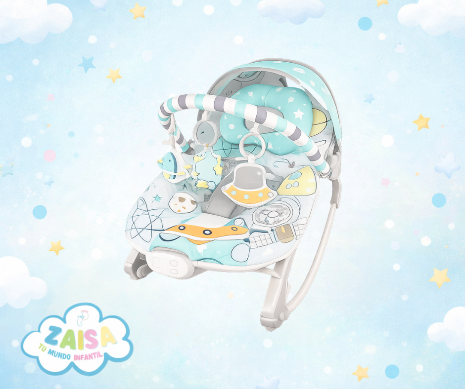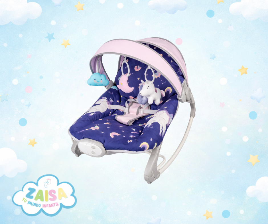 Silla mecedora para bebé con diseño encantador de unicornios y colores vibrantes, ideal para estimular la imaginación mientras brinda confort y seguridad. Perfecta para relajar, entretener y acompañar a tu bebé en su día a día.