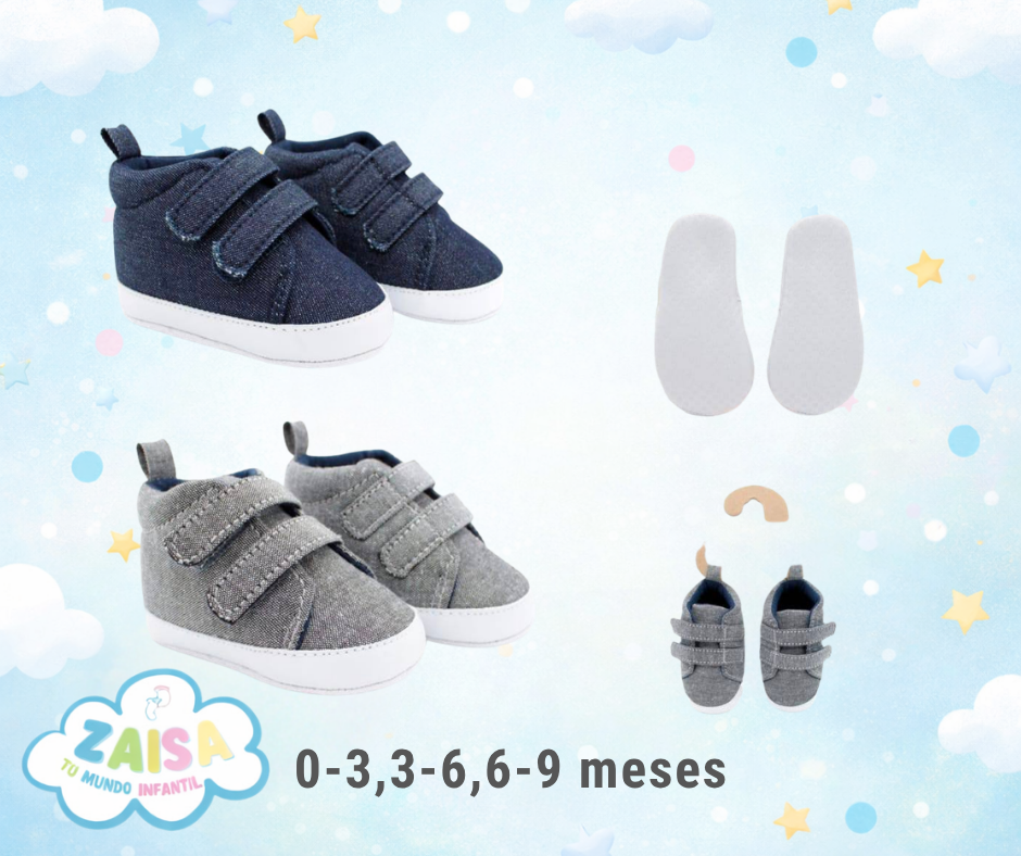 Un diseño casual y versátil que combina estilo y comodidad para los más pequeños. Estos tenis tipo denim son ideales para acompañar a tu bebé en su día a día con un look moderno y práctico.
